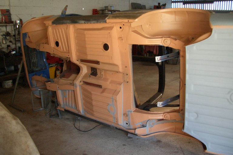 Two coats of stonechip, all the joints and seams sealed then two coats of French Blue and all of a sudden there's a real nice looking car emerging.