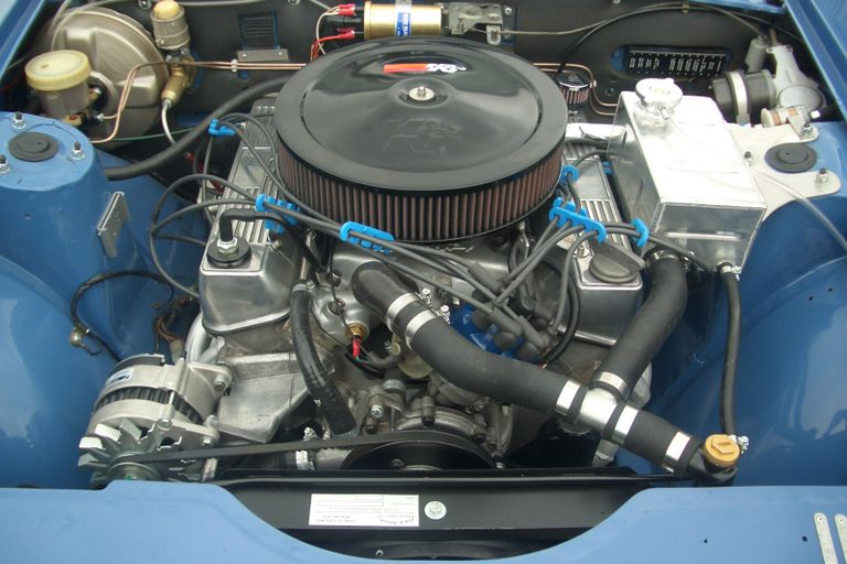 There's also a trusty Holley 390 carb with K&N filter and a Revotec electric fan with their lovely electronic in line thermostatic controller. It's all pretty standard stuff but it looks right at home and has a lot more punch than a Triumph V8. It has to be said it doesn't sound so tuneful as the Triumph engine, but I'd happily trade that for the simplicity and extra power.