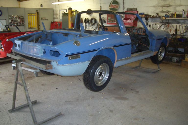 This car arrived looking reasonably tidy but minus engine, gearbox, radiator and propshaft. The story being that a relative of the current owner spent a lot of money having the body restored and the engine rebuilt, only for the engine to expire! So it was removed and thrown away (kind of) and the car put to one side. And there it stayed until it was taken on by the new owner many years later in the knowledge that at least the body would be good....hmm.